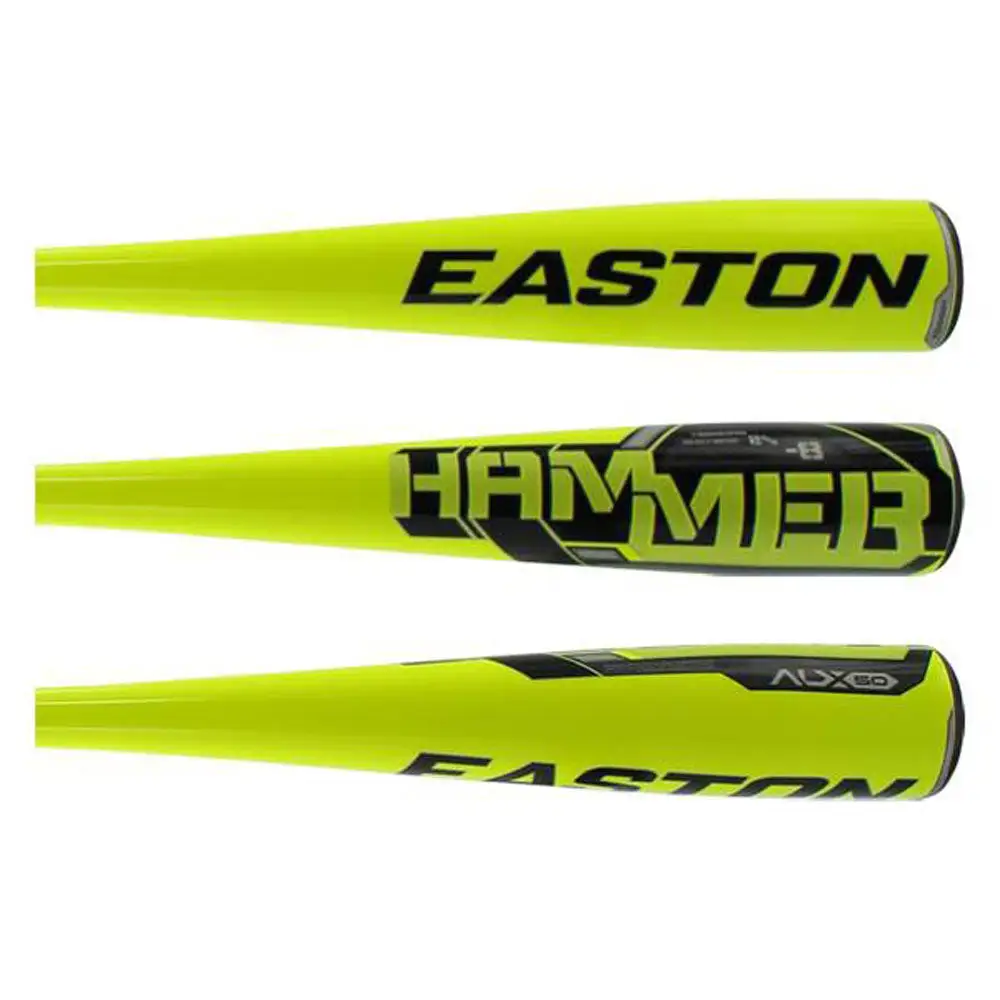 The Easton Hammer is a lightweight and durable youth baseball bat. Created using a one-piece design, this bat uses ALX50 Aircraft Grade Material for a smooth swing, a powerful hit, and a lightweight feeling at every at bat! With a massive sweet spot, players can focus on less on ball placement and more on the motion of their arms